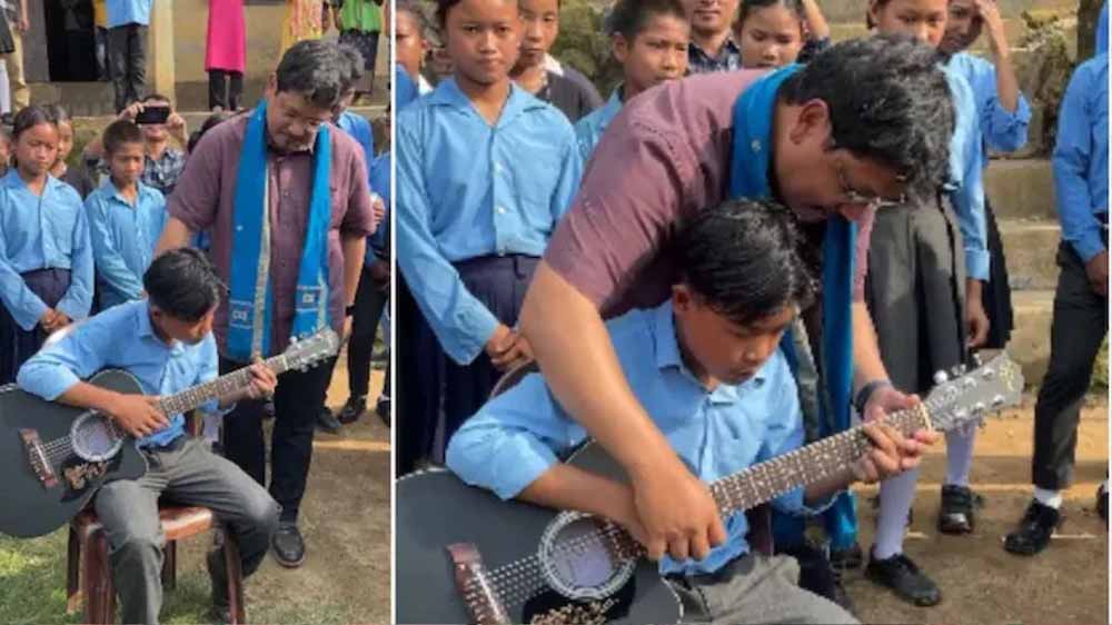 वीडियो शेयर करते हुए संगमा ने लिखा, जिरांग के नोंगस्पुंग-ए गांव में एक छात्र गिटार बजाने की कोशिश कर रहा था, इसलिए मैंने वहां के स्कूल को एक गिटार भेंट किया। वह अभी शुरुआती स्तर पर है, लेकिन मुझे विश्वास है कि जब उनके नए स्कूल भवन का उद्घाटन होगा, तब वह अच्छे से गिटार बजा पाएगा.