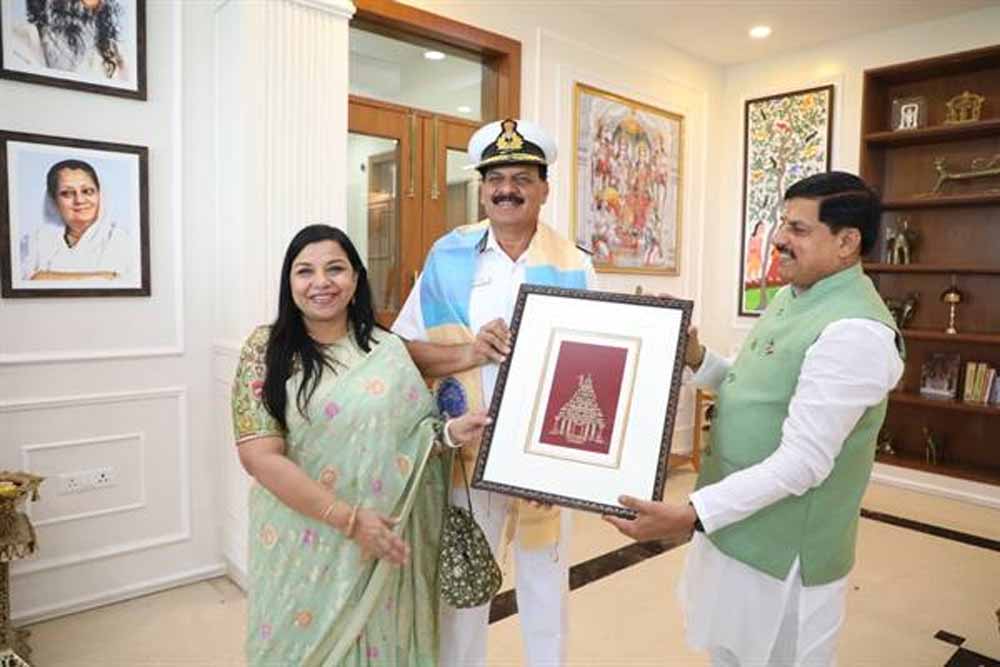 मुख्यमंत्री डॉ. यादव ने श्री त्रिपाठी को अंगवस्त्र ओढ़ाकर बाबा महाकाल मंदिर का छायाचित्र भेंट किया। एडमिरल श्री त्रिपाठी ने मुख्यमंत्री डॉ. यादव को लाइट हाउस की प्रतिकृति भेंट की।