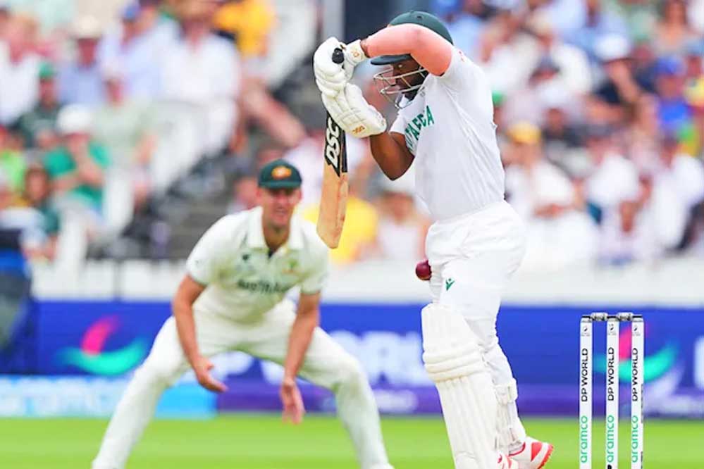 दूसरी ओर टेम्बा बावुमा भी हैमस्ट्रिंग इंजरी से जूझने के बावजूद बेहतरीन पारी खेलने में कामयाब रहे. बावुमा ने 134 गेंदों पर 66 रन बनाए, जिसमें पांच चौके शामिल रहे. बावुमा को विपक्षी कप्तान पैट कमिंस ने चलता किया. ट्रिस्टन स्टब्स कुछ खास नहीं कर पाए और 8 रन बनाकर मिचेल स्टार्क का शिकार बने. यहां से मार्करम और डेविड बेडिघम ने पांच विकेट के लिए 35 रनों की साझेदारी करके साउथ अफ्रीका को जीत के करीब पहुंचा. जब साउथ अफ्रीका को जीतने के लिए 6 रन बनाने थे, तब मार्करम आउट हुए. मार्करम को जोश हेजलवुड ने चलता किया. मार्करम ने 207 गेंदों पर 136 रन बनाए, जिसमें 14 चौके शामिल रहे.