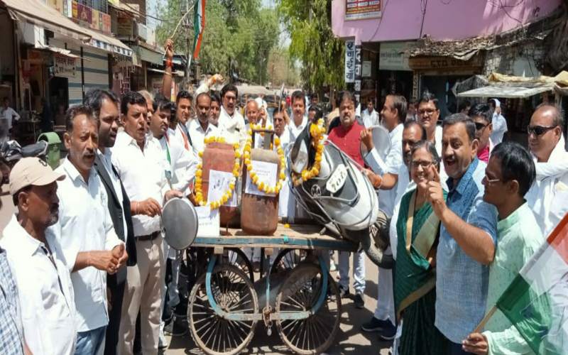 हरदा। हरदा जिला एवं शहर कांग्रेस कमेटी के नेतृत्व में नित्य बढ़ती बेतहाशा महंगाई को लेकर नारायण टाकिज चौराहे पर गैस टंकियों एवं दुपहिया वाहन पर माला पहनाकर “मोदी है तो महंगाई है” के नारे लगाते हुए हाथो में थालियाँ बजाते हुए सोई हुई भाजपा सरकार को जगाने का प्रयास किया गया। बढ़ती हुई महंगाई से जनता को राहत दिलाने के लिए महंगाई मुक्त भारत अभियान का आगाज किया।