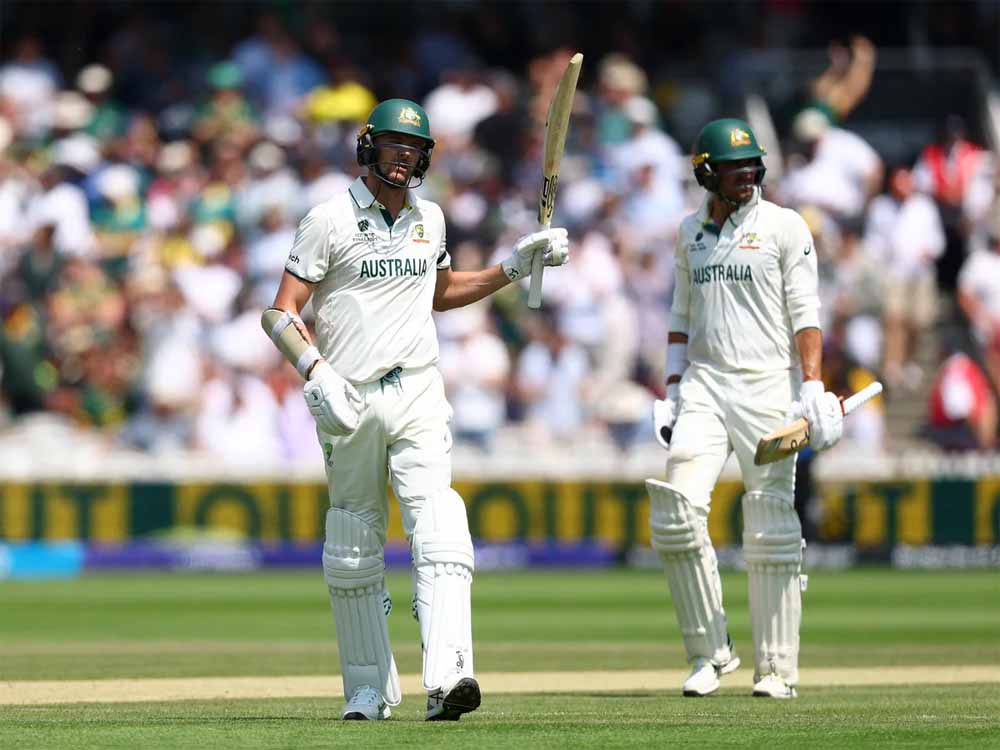हेजलवुड ने भी स्टार्क का साथ अच्छे से दिया और अपनी बल्लेबाजी तकनीक से प्रभावित करते हुए 53 गेंद की पारी में दो चौके लगाये। मार्को यानसेन की गेंद स्टार्क के बल्ले का किनारा लेते हुए स्लिप के ऊपर से चार रनों के लिए चली गयी जिससे उन्होंने टेस्ट में अपना 11वां अर्धशतक पूरा किया और टीम के स्कोर को 200 रन तक पहुंचाया। आखिरी विकेट चटकाने के लिए दक्षिण अफ्रीका के कप्तान तेम्बा बावुमा ने तेज गेंदबाजों को आजमाने के बाद केशव महाराज को गेंदबाजी दी। महाराज भी टीम को सफलता दिलाने में नाकाम रहे जिसके बाद मारक्रम को गेंद थमाई गयी। इस कामचलाऊ स्पिनर का पहला ओवर मेडन रहा लेकिन उनके दूसरे ओवर की आखिरी गेंद पर बड़ा शॉट खेलने की कोशिश में हेजलवुड महाराज को कैच दे बैठे। इससे पहले ऑस्ट्रेलिया के कप्तान कमिंस ने 6/28 का शानदार प्रदर्शन किया। लॉर्ड्स में टेस्ट कप्तान के तौर पर यह उनका सर्वश्रेष्ठ प्रदर्शन है। ऑस्ट्रेलिया की पहली पारी के 212 रन के जवाब में दक्षिण अफ्रीका की टीम महज 138 रन पर ढेर हो गई। इस तरह से उनकी टीम को 74 रन की बढ़त मिल गई।