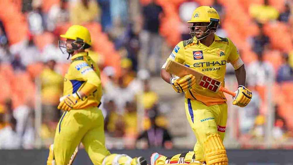 डेवोन कॉनवे अर्धशतक लगाकर अपना विकेट गंवा बैठे। कॉनवे ने 34 गेंदों पर पचासा पूरा किया, लेकिन इसकी अगली ही गेंद पर राशिद खान ने उन्हें बोल्ड कर पवेलियन की राह दिखाई। कॉनवे 35 गेंदों पर छह चौकों और दो छक्कों की मदद से 52 रन बनाकर आउट हुए। शाहरुख खान ने शिवम दुबे को आउट कर सीएसके को तीसरा झटका दिया। शिवम आठ गेंदों पर दो छक्कों की मदद से 17 रन बनाकर आउट हुए। साई किशोर ने उर्विल पटेल को आउट कर सीएसके को दूसरा झटका दिया। इस तरह उर्विल और कॉनवे के बीच अर्धशतकीय साझेदारी टूट गई। उर्विल और कॉनवे ने दूसरे विकेट के लिए 63 रन जोड़े। उर्विल 19 गेंदों पर चार चौकों और दो छक्कों की मदद से 37 रन बनाकर आउट हुए।