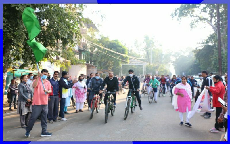 कलेक्टर नीरज कुमार सिंह ने हरी झंडी दिखाकर साईकिल रैली को किया रवाना।