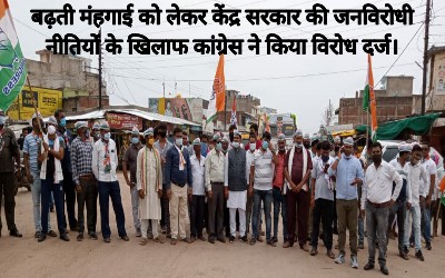 Congress registered a protest against the anti-people policies of the central government regarding rising inflation.