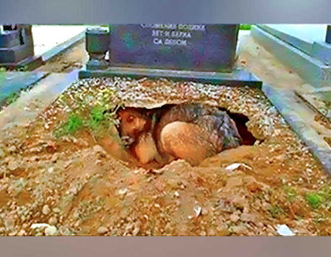 कब्रिस्तान में काम करने वाले वर्कर्स ने को ऐसा शक हुआ कि डॉगी कुछ छिपा रही है। उन्होंने जब उसे वहां से हटाना चाहा तो उनकी नजर पीछे छिपकर बैठे कुत्ते के बच्चों पर गई। पहले तो डॉगी इन वर्कर्स से डर रही थी, लेकिन जब उसे विश्वास हो गया कि ये लोग उसके बच्चों को कोई नुकसान नहीं पहुंचाएंगे, तो उसने वर्कर्स को अपने बच्चों के पास आने दिया। इसके बाद वर्कर्स ने डॉगी को खाना खिलाया और बच्चों सहित अलग जगह पर शिफ्ट कर दिया, जहां डॉक्टर्स ने आकर बच्चों की जांच की और उन्हें इंजेक्शन लगाया।