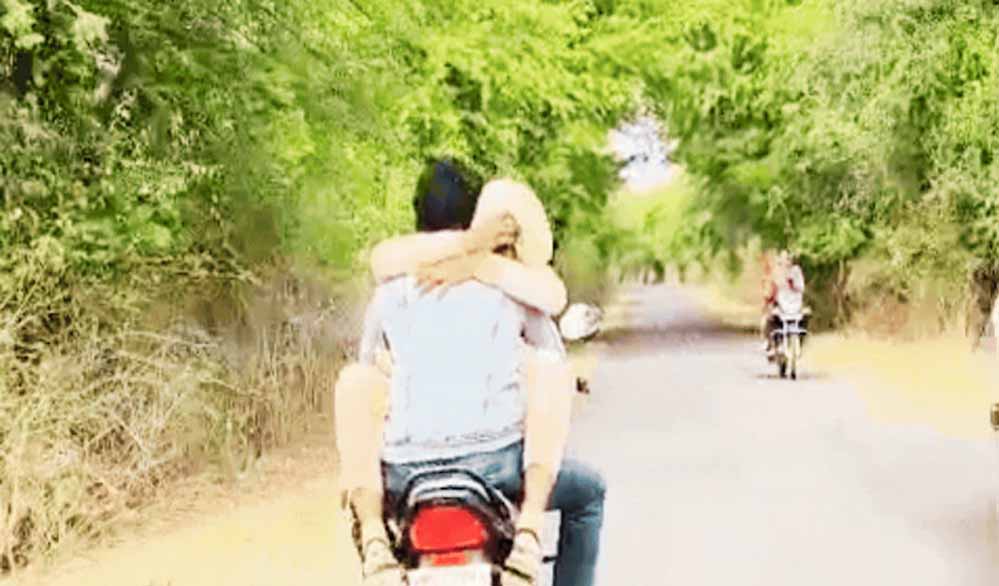 बाइक पर गर्लफ्रेंड-बॉयफ्रेंड का हैरतअंगेज स्टंट
