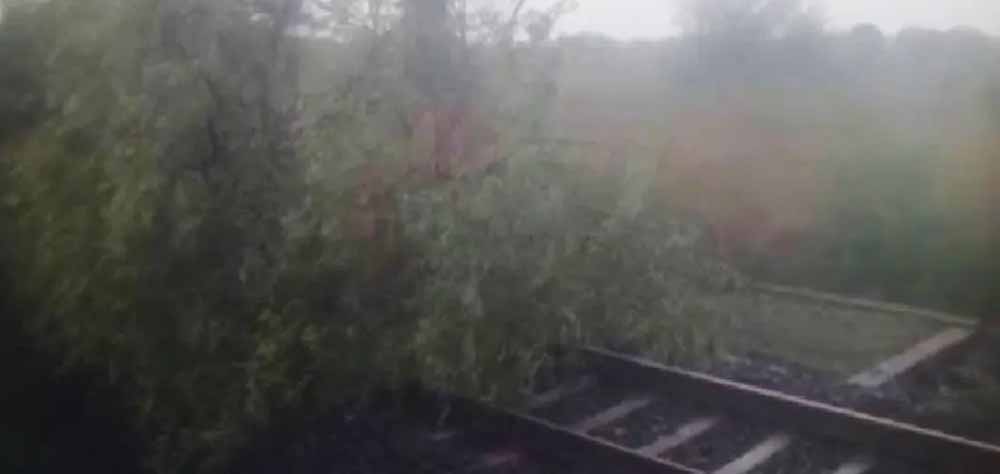 मध्यप्रदेश के उज्जैन जिले में तेज आंधी और तूफान ने लगातार दूसरे दिन ट्रेन संचालन को रोक दिया। शनिवार दोपहर बेरछा और पीर अमरूद स्टेशनों के बीच आंधी में रेलवे ट्रैक पर एक बड़ा पेड़ गिर गया जिसके कारण भोपाल से दाहोद जा रही ट्रेन नंबर 19340 को बीच रास्ते में रोकना पड़ा। ट्रैक पर पेड़ गिरने के कारण भोपाल-दाहोद ट्रेन करीब एक घंटे से ज्यादा वक्त तक ट्रैक पर ही खड़ी रही।