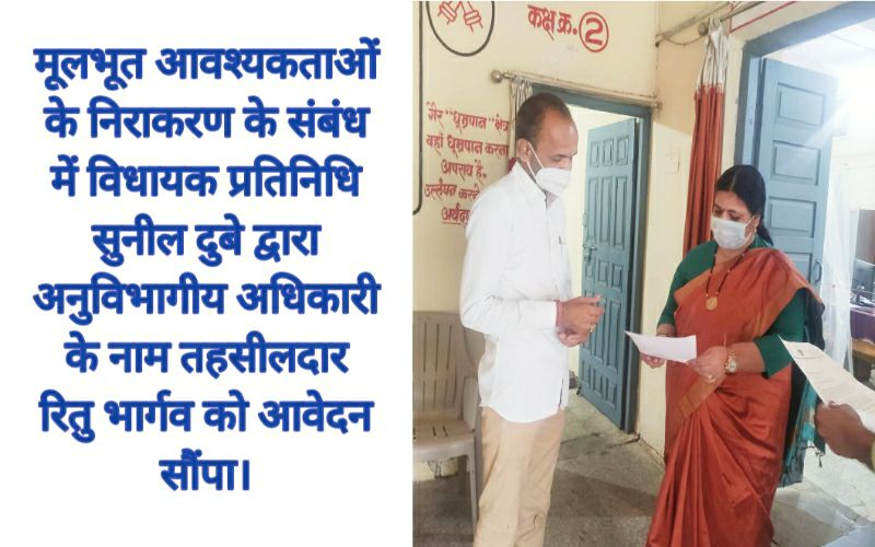 टिमरनी। मूलभूत आवश्यकताओं के निराकरण के संबंध में विधायक प्रतिनिधि सुनील दुबे द्वारा अनुविभागीय अधिकारी के नाम तहसीलदार रितु भार्गव को आवेदन सौंपा।