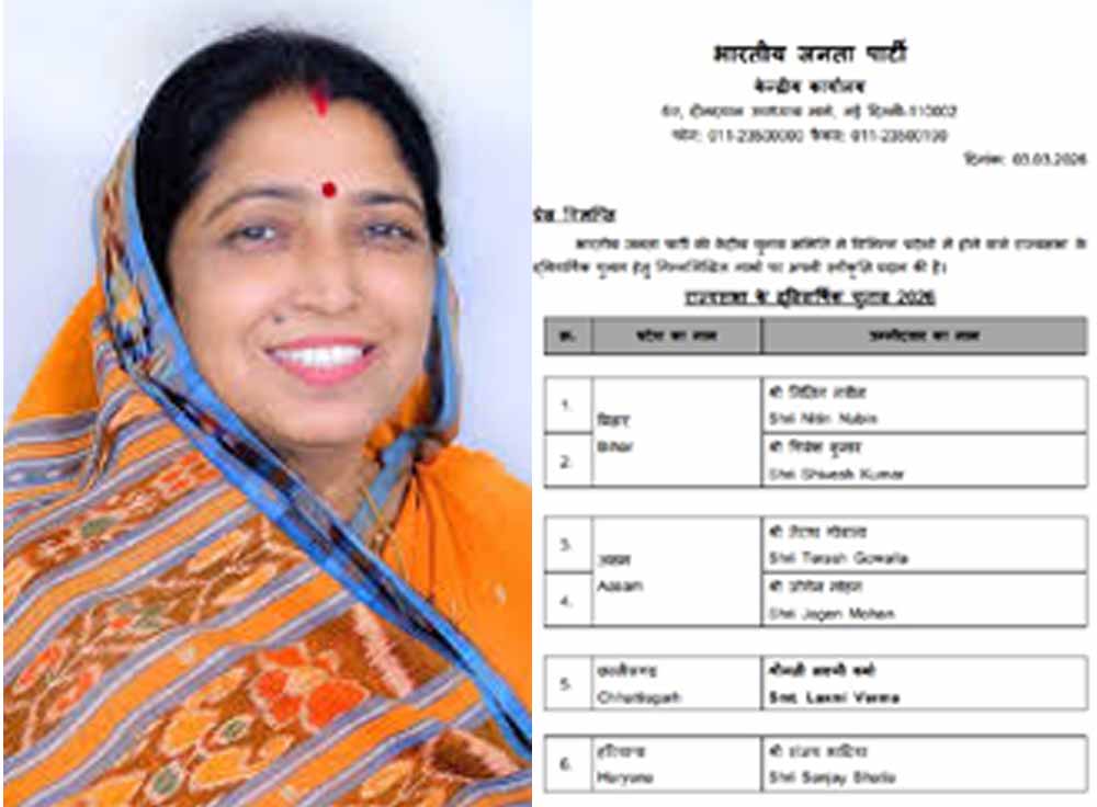 पार्टी नेतृत्व ने संगठनात्मक अनुभव, सामाजिक समीकरण और क्षेत्रीय प्रतिनिधित्व को ध्यान में रखते हुए यह निर्णय लिया है. लक्ष्मी वर्मा लंबे समय से पार्टी की सक्रिय कार्यकर्ता रही हैं और विभिन्न दायित्वों का निर्वहन कर चुकी हैं. राज्यसभा की इस सीट के लिए नामांकन प्रक्रिया निर्धारित तिथि पर शुरू होगी.