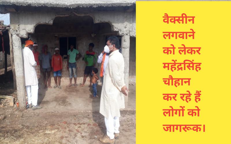 वैक्सीन लगवाने को लेकर महेंद्रसिंह चौहान लोगों को कर रहे जागरूक।