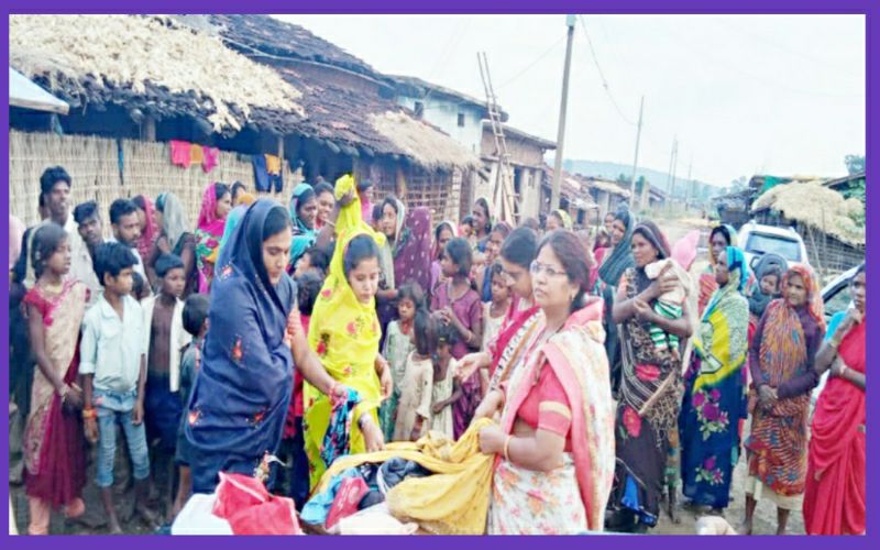 महिला कांग्रेस सेवादल ने आदिवासी क्षेत्रों में वितरित किये गए कपड़े।