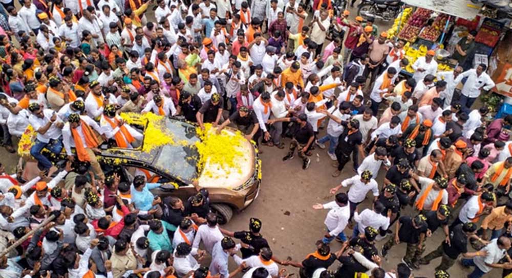 मराठा आरक्षण आंदोलन के नेता मनोज जरांगे की मुंबई में भूख हड़ताल शुरू हो गई है। मनोज जरांगे शुक्रवार सुबह मुंबई के आजाद मैदान पहुंचे, जहां मराठा आरक्षण की मांग को लेकर जरांगे और उनके समर्थक एक दिवसीय भूख हड़ताल कर रहे हैं। सैकड़ों वाहनों के काफिले के साथ मनोज जरांगे ने बुधवार को जालना जिले के अपने गांव से मार्च शुरू किया था। शुक्रवार को मुंबई में प्रवेश करते ही वाशी में समर्थकों ने उनका स्वागत किया। उनके हजारों समर्थक पहले ही मुंबई पहुंच चुके हैं।