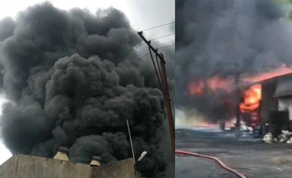 डामर फैक्ट्री में भीषण आग, करोड़ों के नुकसान की आशंका