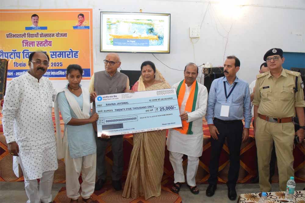 जिले की प्रभारी मंत्री श्रीमती सम्पतिया उईके मंत्री मध्यप्रदेश शासन लोक स्वाथ्य यांत्रिकी विभाग ने आज सरई स्थित शासकीय सांदीपनि उच्चतर माध्यमिक विद्यालय में आयोजित लैपटॉप वितरण समारोह में सम्मिलित हुई। समारोह के दौरान दौरान कक्षा 12वीं की बोर्ड परीक्षा में 75 प्रतिशत या उससे अधिक अंक प्राप्त करने वाले विद्यार्थियों को प्रतिभाशाली विद्यार्थी प्रोत्साहन योजना के अंतर्गत 25 हजार की प्रोत्साहन राशि वितरित कर उन्हें उज्ज्वल भविष्य के लिए शुभकामनाएं दीं। इस असवर पर प्रभारी मंत्री ने कहा कि यह योजना राज्य सरकार द्वारा मेधावी विद्यार्थियों को प्रोत्साहित करने एवं उन्हें उच्च शिक्षा के लिए सशक्त बनाने की दिशा में एक सराहनीय पहल है। शिक्षा के क्षेत्र में राज्य सरकार द्वारा किए जा रहे ऐसे प्रयास निश्चित रूप से हमारे युवाओं को आत्मनिर्भर, जागरूक और राष्ट्र निर्माण में सहभागी बनाएंगे। कार्यक्रम में सांसद श्री राजेश मिश्रा , देवसर विधायक श्री राजेंद्र मेश्राम , कलेक्टर श्री चन्द्र शेखर शुक्ला, पुलिस अधीक्षक श्री मनीष खत्री, भाजपा जिला अध्यक्ष श्री सुंदरलाल शाह सहित विद्यालय की छात्र छात्राए प्राचार्य एवं शिक्षक गण उपस्थित रहे।