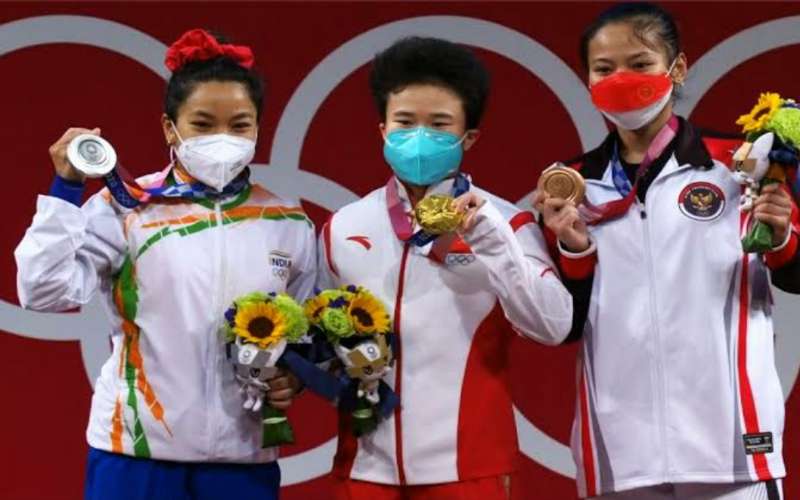 टोक्यो ओलंपिक रजत पदक विजेता मीराबाई चानू लौटी स्वदेश जोरदार अभिनंदन व स्वागत पदक किया देश को समर्पित।