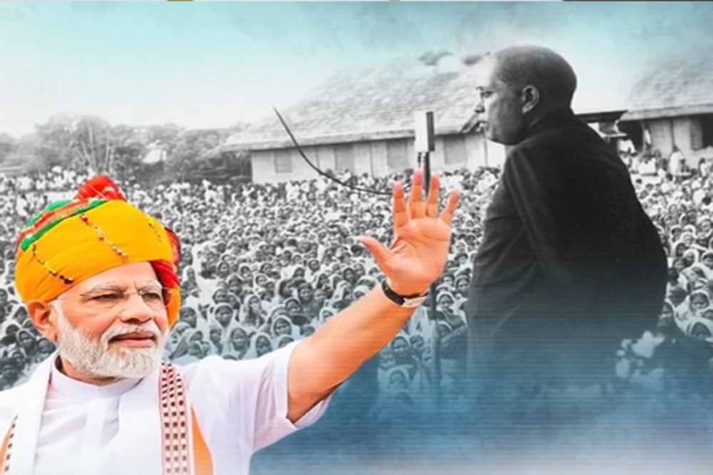 ‘मोदी स्टोरी’ एक्स हैंडल में साझा किए गए वीडियो में बताया गया है कि संगठन की तरफ से प्रचार की कमान मिलने के बाद नरेंद्र मोदी ने बाबासाहेब अंबेडकर के सिद्धांतों और विचारों को अपने जीवन में उतारा। प्रचार की कमान मिलने के बाद वे हरिजन बस्ती में जाते और उनसे मुलाकात करते। उनके विकास पर जोर देते हैं और यह सुनिश्चित करते हैं कि उनके हितों पर किसी भी प्रकार की कुठाराघात नहीं पहुंचे। नरेंद्र मोदी का हमेशा से ही मानना रहा है कि जब तक हम समाज के अंतिम पंक्ति पर खड़े व्यक्ति का विकास सुनिश्चित नहीं करेंगे, तब तक समाज के समग्र विकास की परिकल्पना करना व्यर्थ है। नरेंद्र मोदी का हमेशा से ही मानना रहा है कि गरीबों की सेवा ही मूल रूप से राष्ट्रसेवा है।