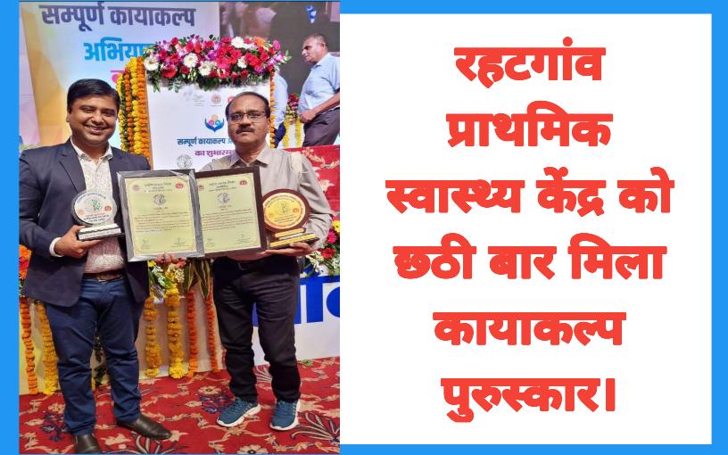 रहटगांव प्राथमिक स्वास्थ्य केंद्र को छठी बार मिला कायाकल्प पुरुस्कार।