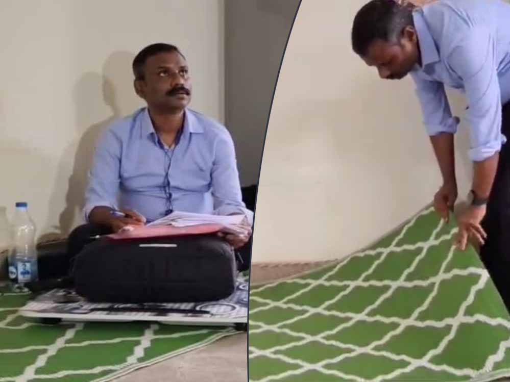 चटाई पर बैठ काम निपटा रहे सहायक महाप्रबंधक