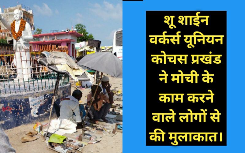 शू शाईन वर्कर्स यूनियन कोचस प्रखंड ने मोची के काम करने वाले लोगों से की मुलाकात।