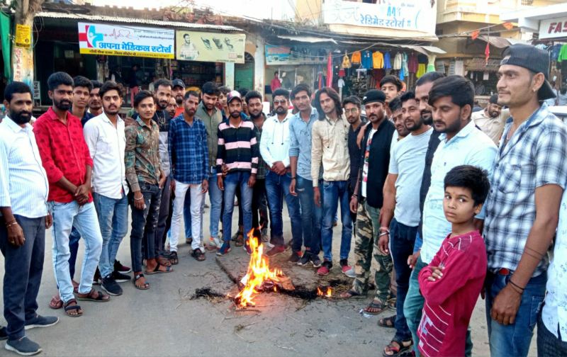 शिवराज सरकार के मंत्री के खिलाफ करणी सेना ने दर्ज कराया अपना विरोध फूंका पुतला।