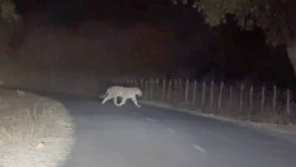 अमरकंटक में सड़क पर दिखा बाघ, गुजरते शिक्षक ने मोबाइल में कैद किया रोमांचक नज़ारा
