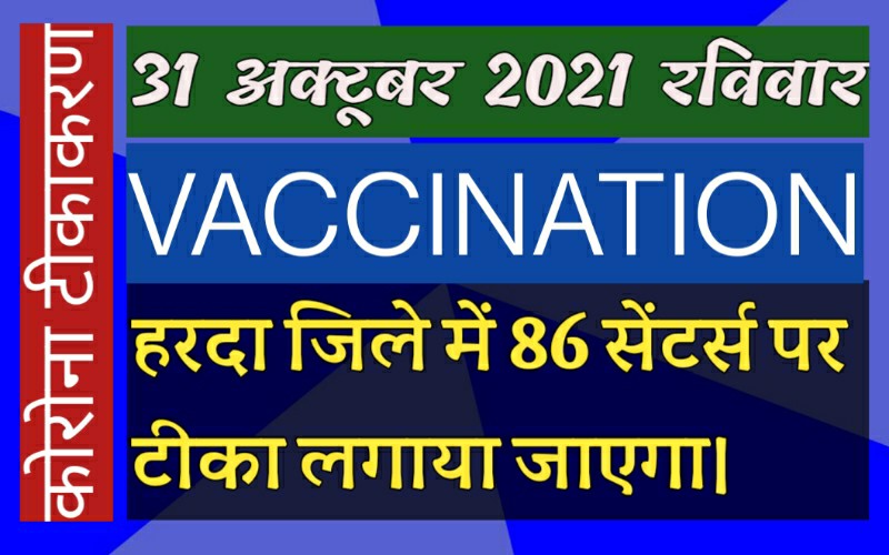 टीकाकरण महा अभियान में दिनांक 31 अक्टूबर 2021 दिन रविवार को हरदा जिलें में 86 सेंटर्स पर कोरोना का टीका लगाया जावेगा।